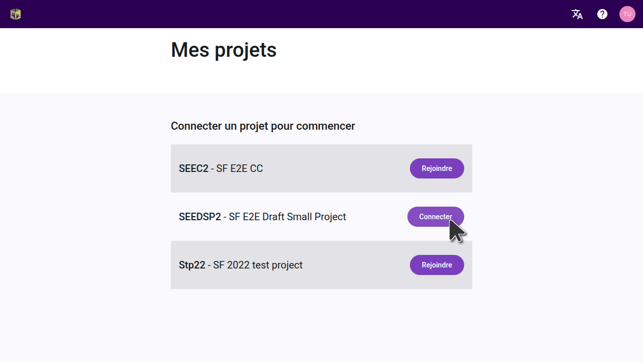 Vous pouvez également cliquer sur l’icône de votre profil en haut à droite de l’écran et dans le menu déroulant cliquer sur « Mes projets ».